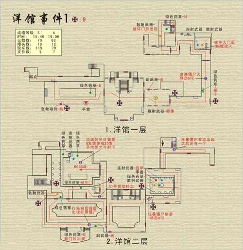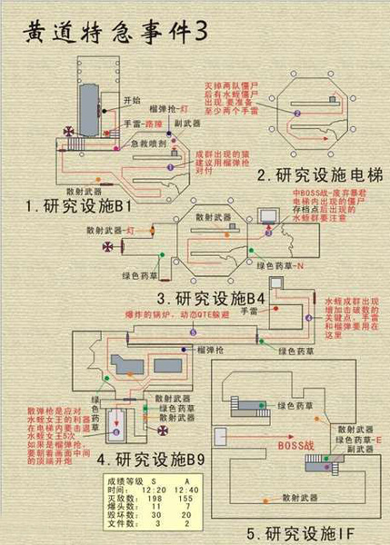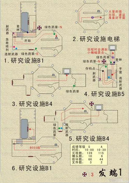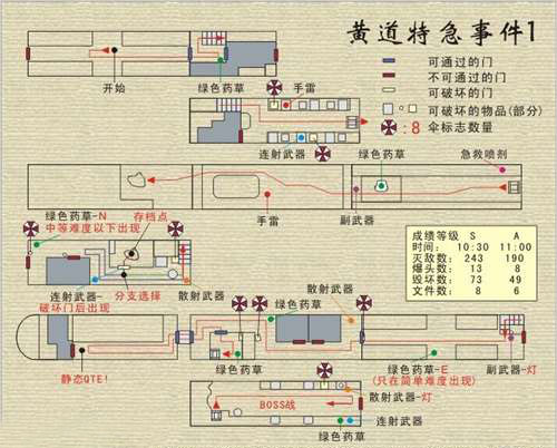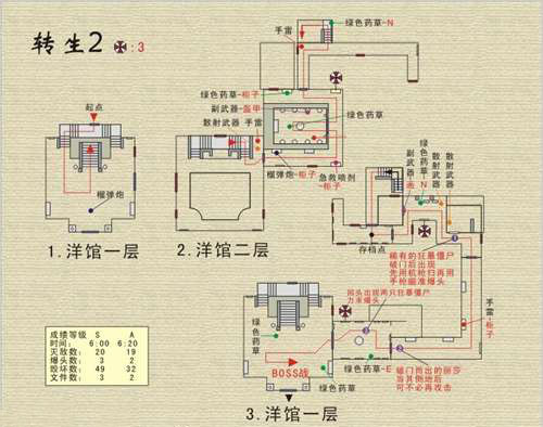 本關A級評價或以上心得:由於這關關係到某隱藏關卡,所以說說,根據我的攻略你的隱藏文件數能拿到A的評價,本關的另外難點在於殺敵,警局大門外的喪屍不會讓你殺完才走的,所以你要連續扔兩顆手雷然後補殺幾個沒倒地的來積累殺敵數。而那個喪屍N多的長方形辦公室每次探頭都扔次手雷,這樣不但殺敵數夠了,而且破壞數加平時你的積累也絕對能達到S了。所以本關的建議攜帶武器是火箭炮,這樣的話路上就有三次補充機會。