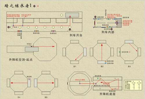 遊戲剛開始場景上了樓梯後,右手邊的第三張桌子上破壞物品有個傘廠標誌。然後回頭出現N多水蛭的時候,面對的是剛上來的樓梯口,樓梯口的右邊的燈內有第二個傘廠標誌。剛上火車能在右邊拿到急救噴霧,在看見一對殭屍時左邊殭屍身下有一手雷容易被忽視。從車頂下來後有一個分支,選擇前進能在走廊盡頭藥草上方內的燈內得到第三個傘廠標誌。原路返回後在下樓梯的拐角前的那個櫃子內有本關第四個傘廠標誌。下樓後,身後的檯燈內有你選擇的武器的彈藥,火車頂上也有,這些彈藥是根據你開始前選擇的槍支變更的。這個地方有個難點就是殭屍離你比較近,往往是轉身後突然就撲過來了,對自己槍法沒自信的可以選擇用霰彈槍解決。然後這個過道的盡頭門上的燈內也有個傘廠標誌,打開門後,經過很多水蛭的走道,在一個拐彎處,你的兩邊分別是兩把疊起來的椅子和一堆紙箱,紙箱內有該關第六個傘廠標誌。第7個標誌在BOSS戰爬樓梯前,藥草的正上方有個傘廠標誌,由於視角轉動很快,手一定要快,然後BOSS戰時右邊的椅子內有第8標誌,也是本關最後個。