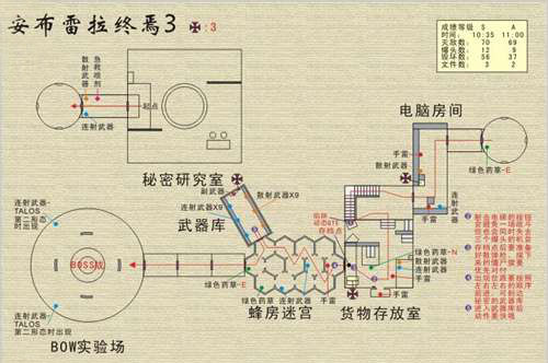 開場電子門開後就有急救噴霧可以拿,電腦終端室內出門前的電腦內有傘廠標誌。解決完敵人後上了樓梯有一QTE提示,躲過後遇到新的敵人--植物,只要開槍把他的頭打的抬起然後在花朵中間補一槍就是暴頭了相當容易應付。迷宮房間內我的選擇方向是先右有分支後再選右邊的房間最後選左,就來到了最終BOSS前了。