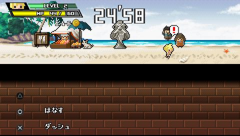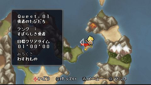 *在地圖中移動的話,就會與魔物發生戰鬥。處於衝刺狀態時,不會發生戰鬥,能夠連續移動,但是HP會持續減少。持有物品時按□鍵就可以使用