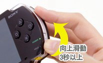 在開機狀態下將開關向上滑動後立即松開如下圖所示:
