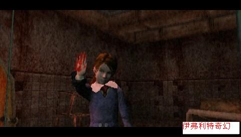 幾下之後搞定之後 進入205房間 看過之前的宣傳視頻因該知道這裏的劇情吧~~ 離開房間時會發生劇情 鏡子裏面出現了一個女孩子的身影 她在玻璃上印了個血手印 主角觸碰玻璃後 進入了裏世界。這樣以後主角就可以通過鏡子 來去現實世界以及裏世界 而地圖也會變成現實世界(看起來很新的那張)和裏世界(看著很舊的那張)兩張。