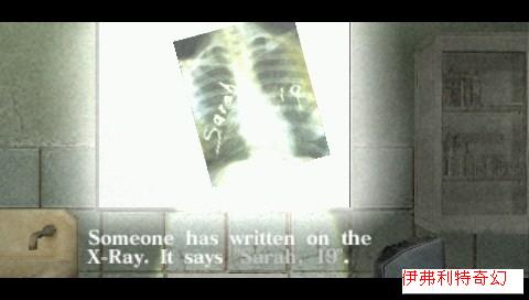 東西拿完走出房間,回到LOBBY 進入先前進不了的EXAMROOM 拿走桌上的大瓶子(我一開始還以為是HP大回復- -||)打字機以及資料觀察牆上的X光片 可以看到密碼箱後面的2個數位19