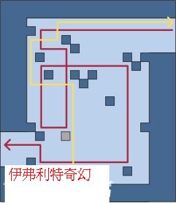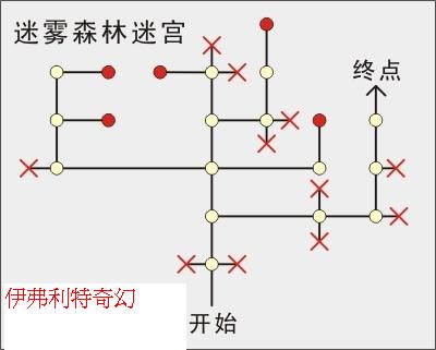 3.接下來的迷霧之森道路十分複雜,參考下圖可確保不會迷路。紅點處為人偶所在的位置,走到X處會自動回到起點,要注意!