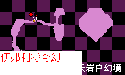 4.拾級而下來到E處,洞口被一倒下的旅人擋住了,他向主角討要泉水解渴。這時可以穿過場景出入口右側的寬溝到達對面,和右側的紅色亮點(粉色泉之精靈)對話,得知要想獲得山泉就必須拿某種葉子作為交換,而最北側的毛怪擁有這種物品。