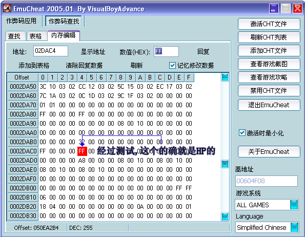 打開EC後資料?查找.然後血條減少後暫停遊戲用-查找.重複以上步驟可以得到正確的資料