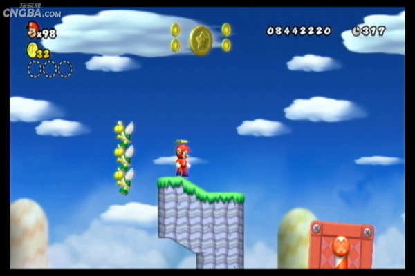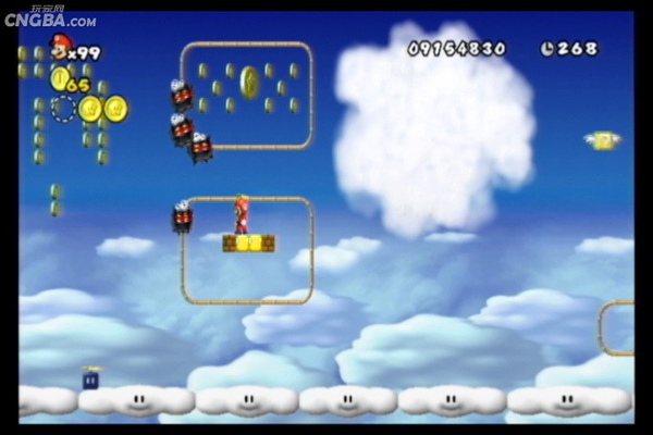 難度較高,這個需要用旁邊的敵人砸金幣。或者用竹蜻蜓吧