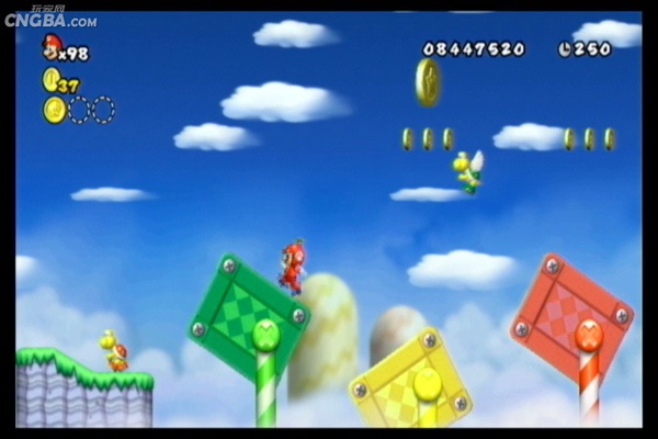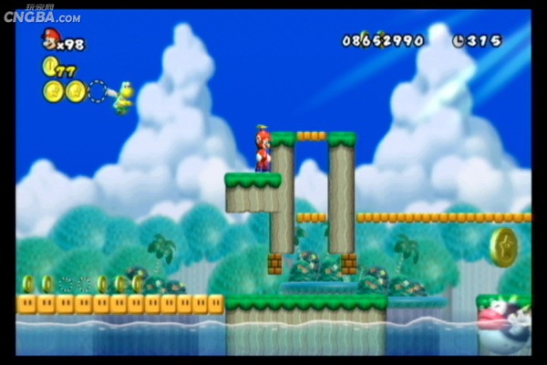 這裏的金幣要一定的技巧,用旁邊的烏龜雜爛牆