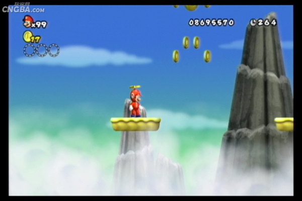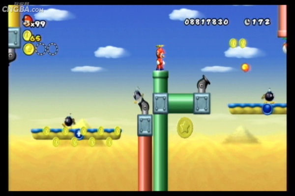注意天上的管道,上去後必須要用竹蜻蜓才能拿到金幣,並且要快,多練習。
